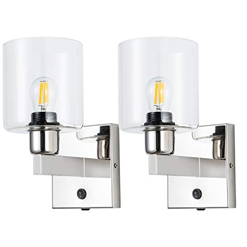 - MODERN GLASS WALL SCONCE: This modern wall sconce features a chrome finished lamp body, study and not easy to rust. The cylindrical clear glass shade display a stylish aesthetic and warm glow to any places.